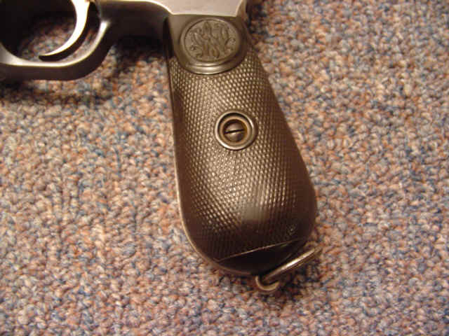 Serial no. 25505, 7.63mm caliber, 5 1/2-inch barrel, blued finish; checkered hard rubber WM grips.