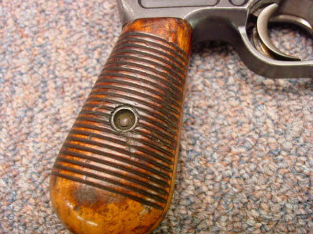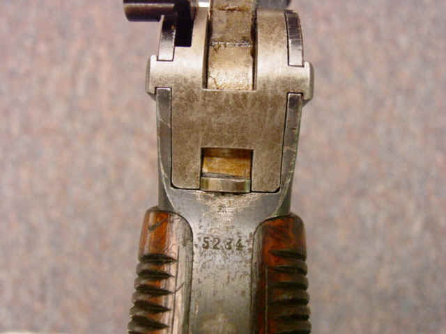 Serial no. 5284, 7.63mm caliber, 5 1/2-inch barrel, blued finish, with varnished walnut