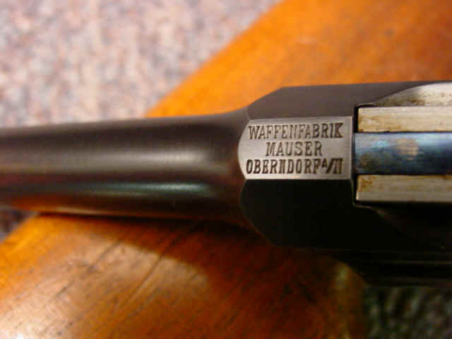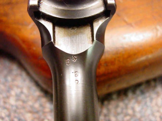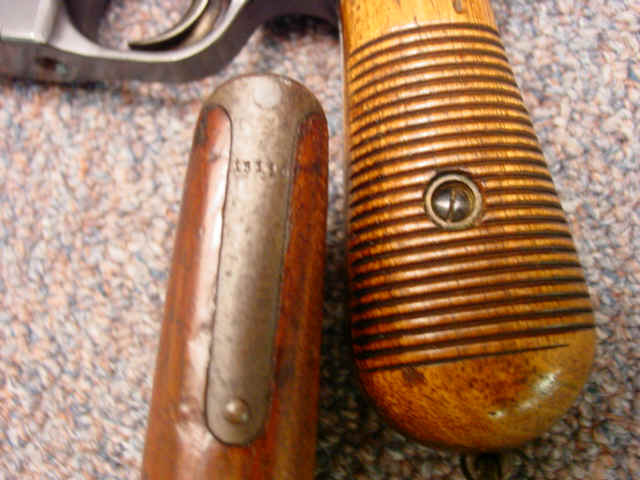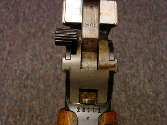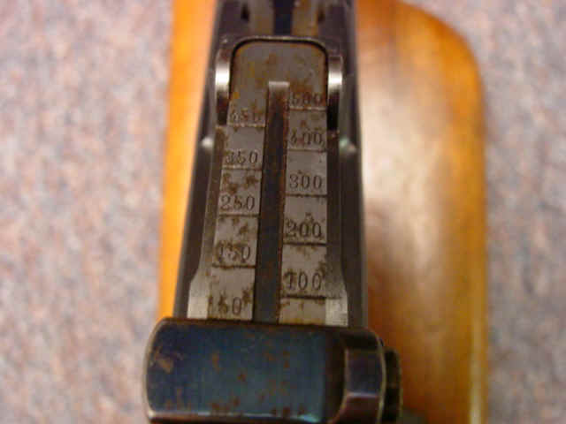 Serial no. 13101, 7.63mm caliber, 5 1/2-inch barrel, 50-500 sight, blued with varnished