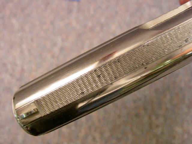 Serial no. 954651, 7.65mm caliber, 3 5/16-inch barrel; black checkered plastic grips.