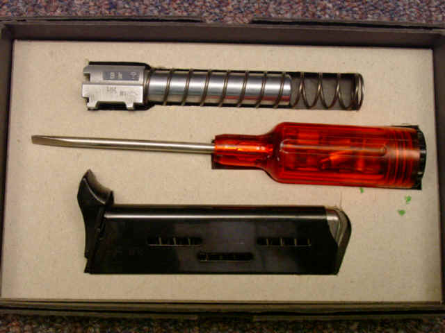 grips. Boxed, as is conversion kit, to .380 caliber, with two magazines and brochures.