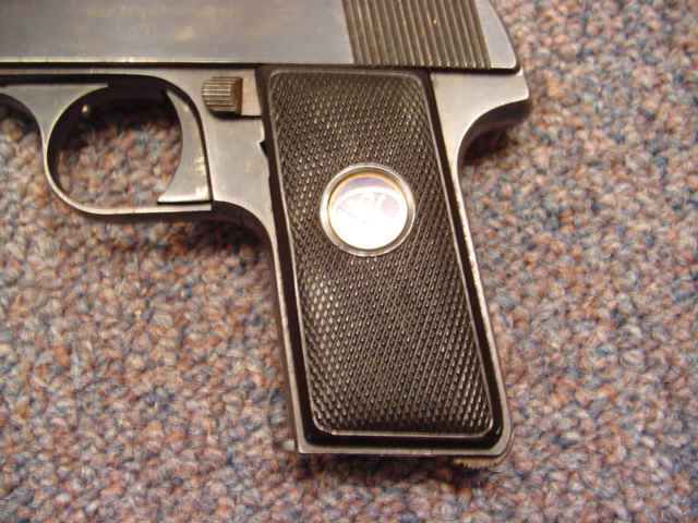 Serial no. S97228, 7.65mm caliber, 2 7/8-inch barrel; standard markings; blued finish; checkered composition grips.