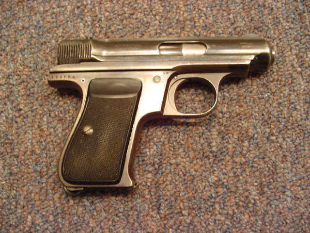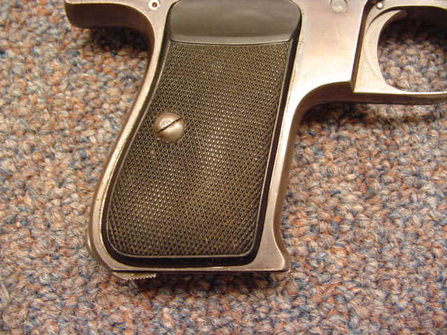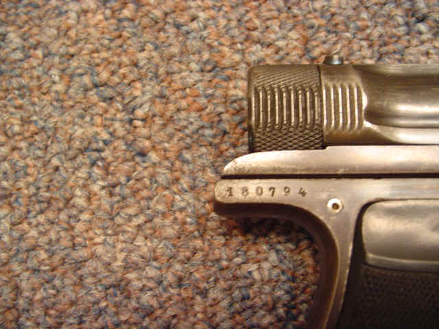 Serial no. 180794, 7.65mm caliber, 3-inch barrel; blued finish; checkered composition