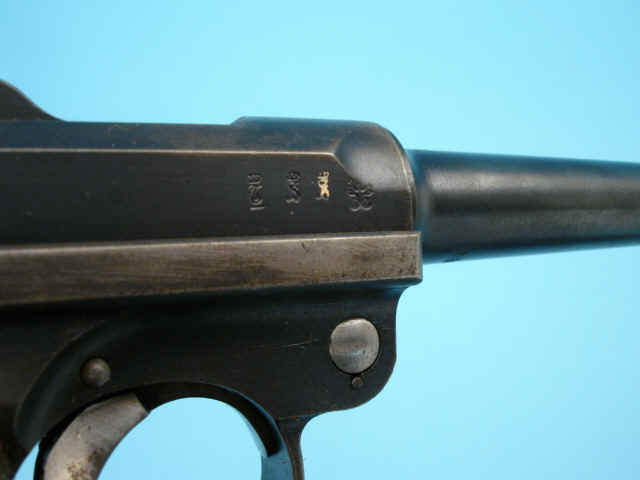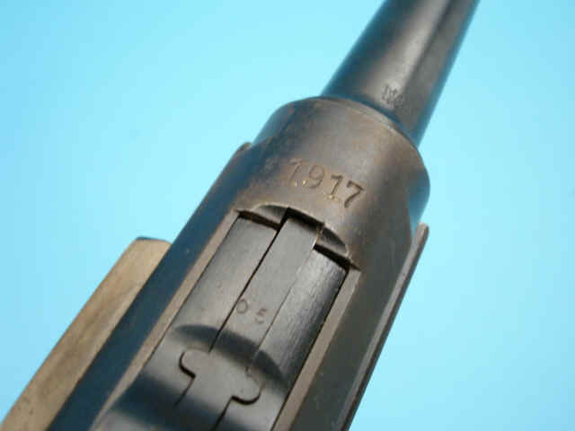 Serial no. 9406, 9mm, 4-inch barrel. Breech dated 1917, Blued finish. Crown proofs.