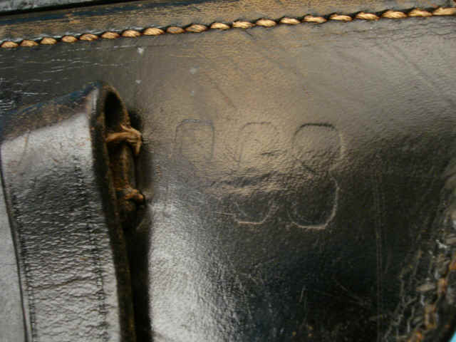 Checkered walnut grips. Contained in a WWII issue holster marked: epf/1941 [with