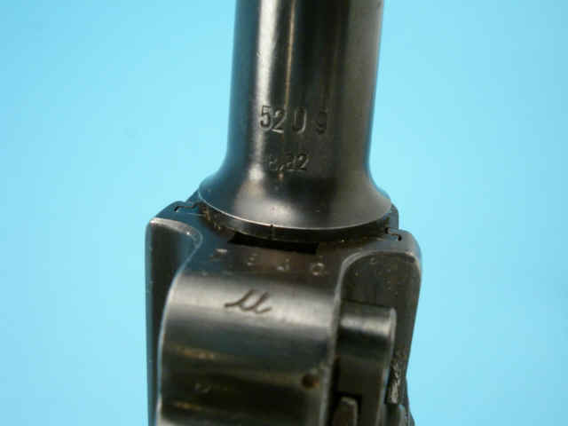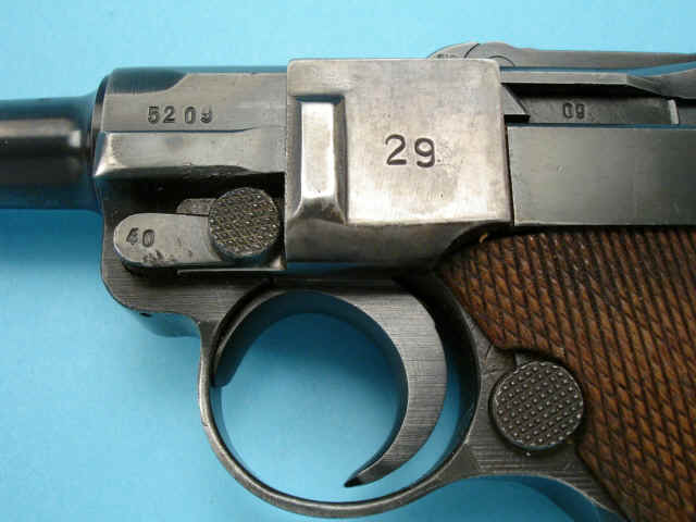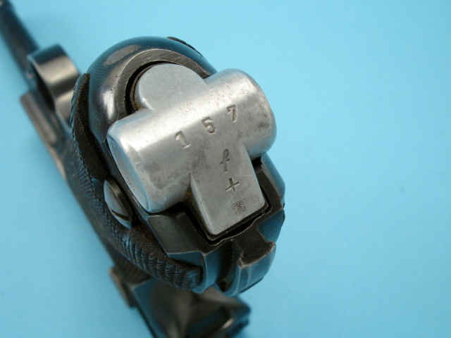 Serial no. 7840 [frame]; 5209[slide];157 [magazine], 9mm, 4-inch barrel. Breech dated