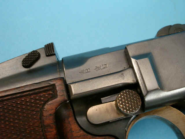 link; blued, with checkered walnut grips. German commercial receiver proof on left side,