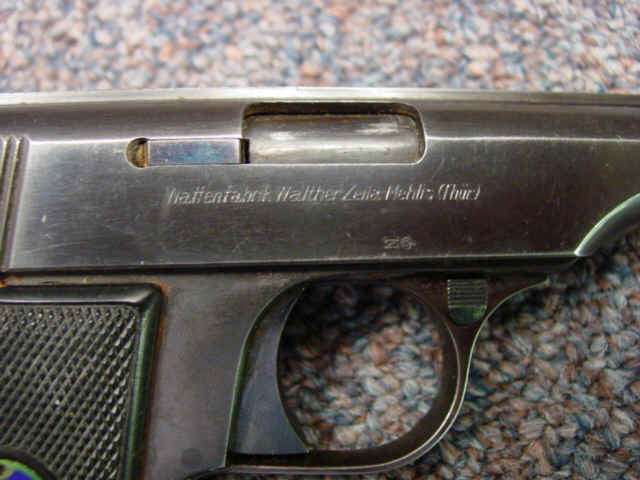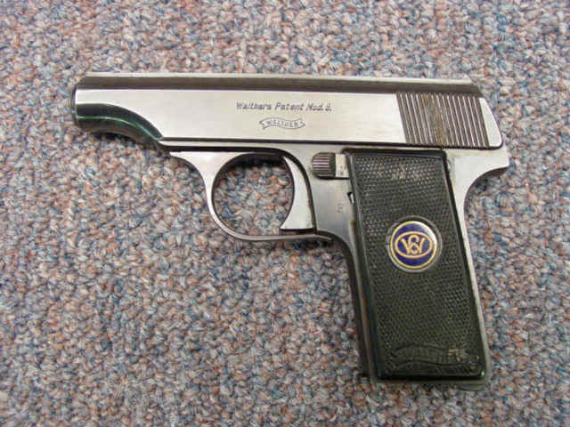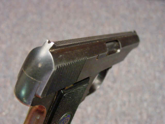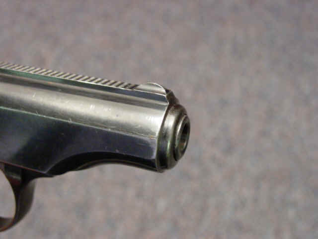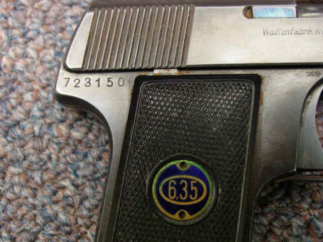 Serial no. 723150, 6.35mm, 2 3/4-inch barrel. Blued finish. Checkered black plastic