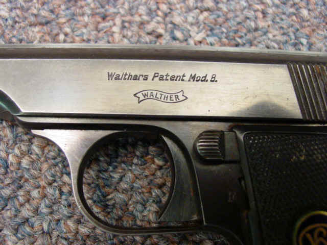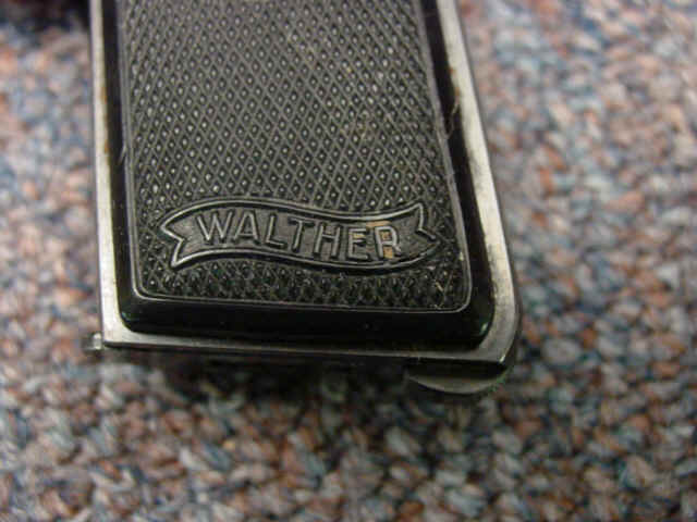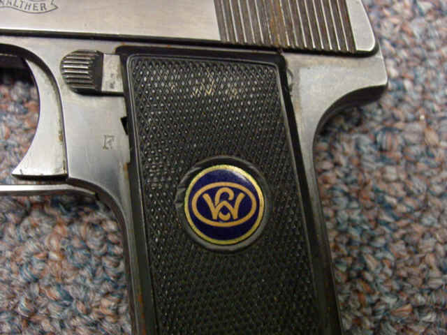 grips with blue cloisonne medallions. Checkered black plastic banner.