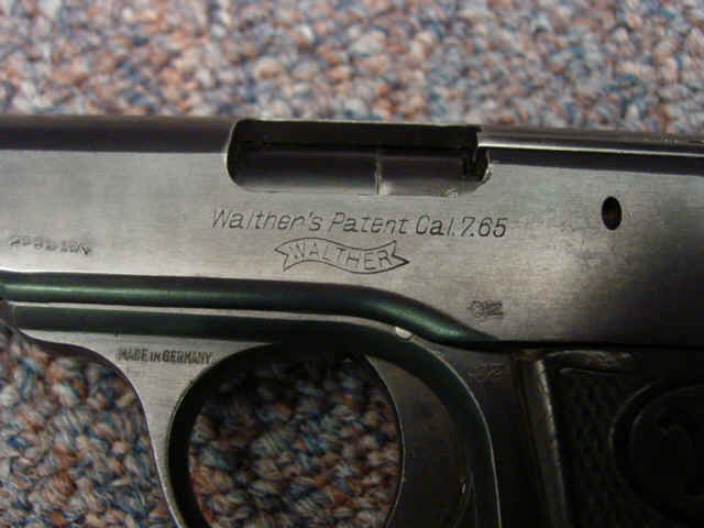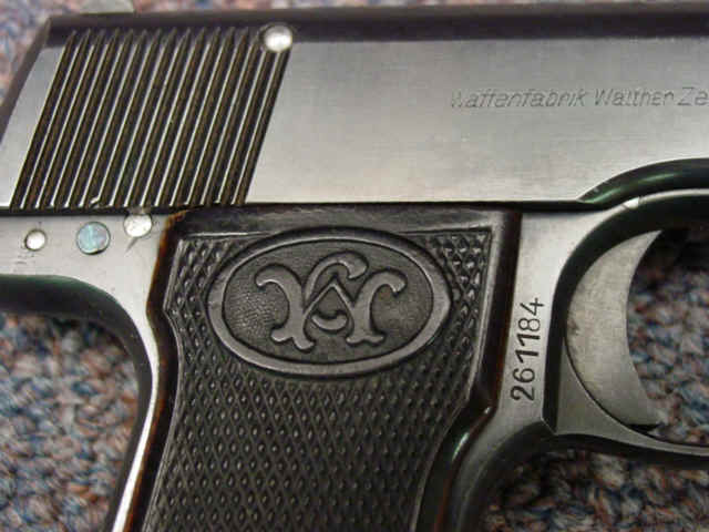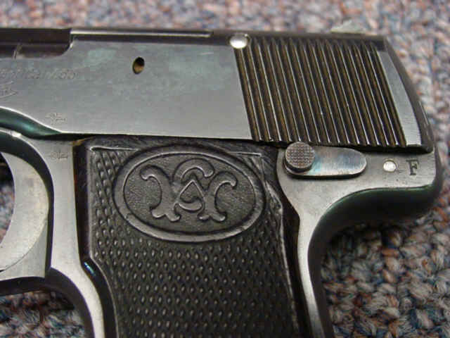 Serial no. 261184, 7.65mm, 3 1/2-inch barrel. Blued finish. Crown N proofs. Checkered