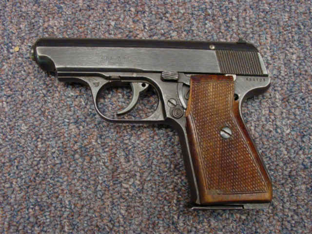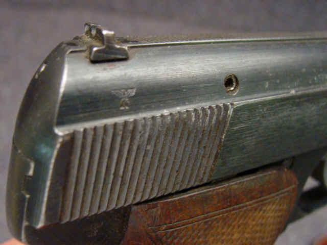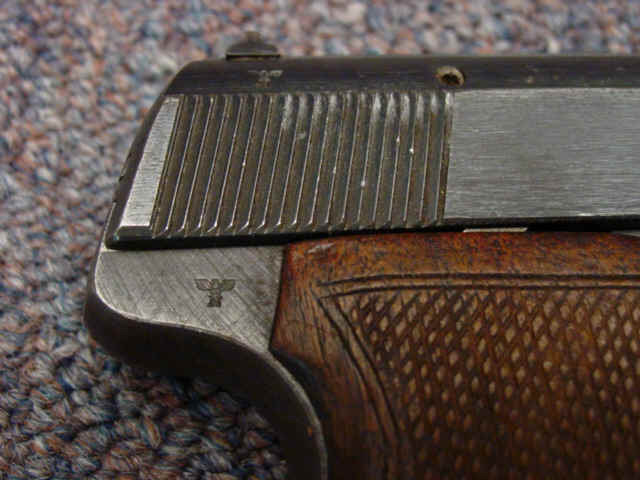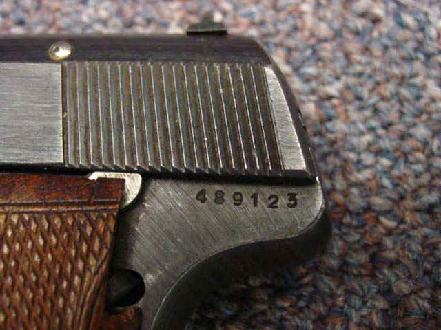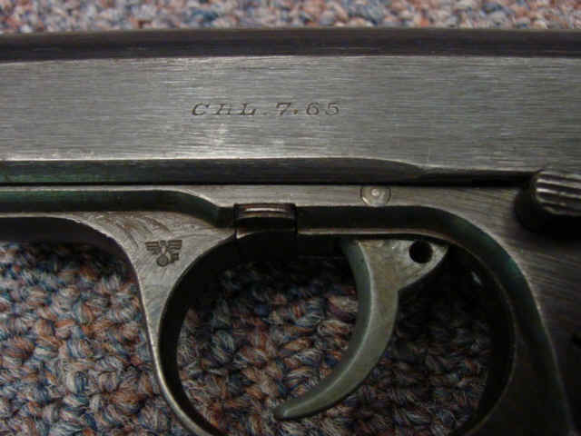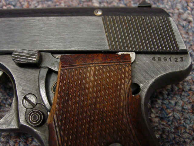 Serial no. 489123, 7.65mm, 3 1/2-inch barrel. Rough arsenal blued finish. Eagle F and