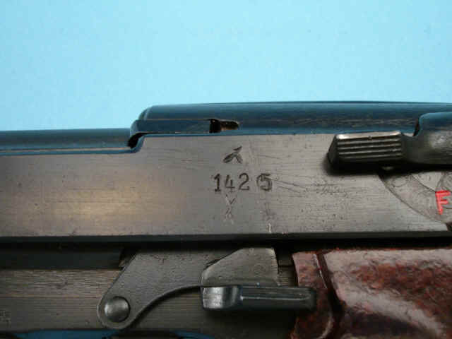 Serial no. 1425, 9mm, 5-inch barrel. Frame brown, slide with satin-blue finish. Brown