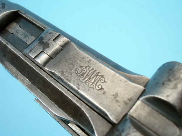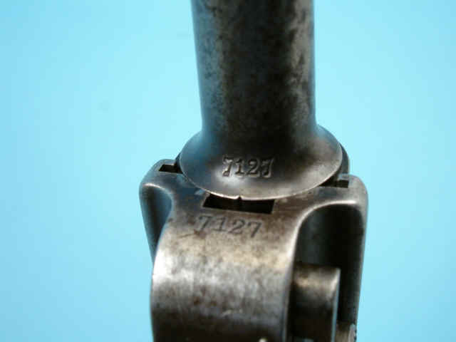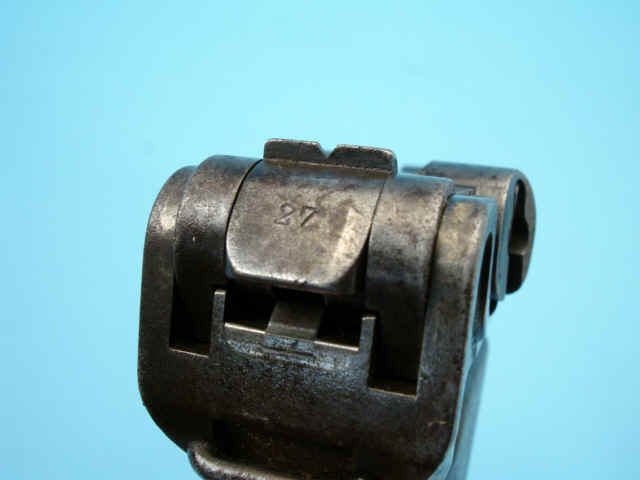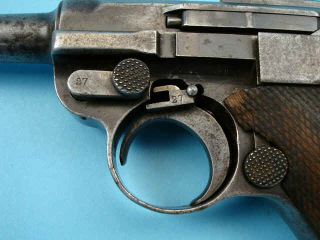 Serial no. 7127, 7.65mm, 4 3/4-inch barrel. Blued finish. Grip safety. Checkered walnut
