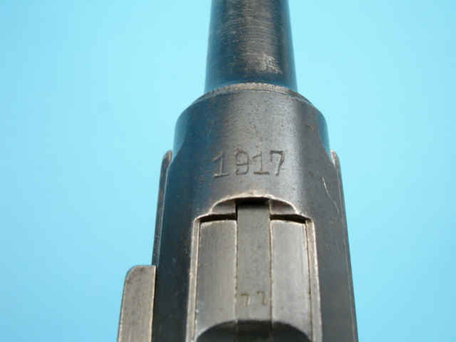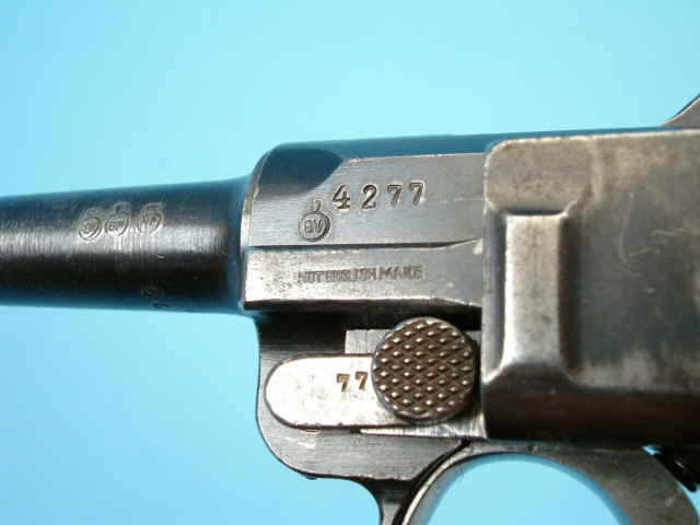 Serial no. 4277, 9mm, 4-inch barrel. Breech marked: 1917. British proofs. Left side of