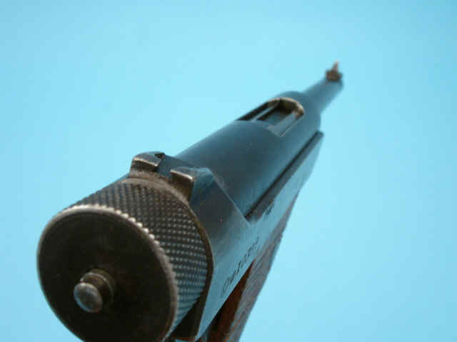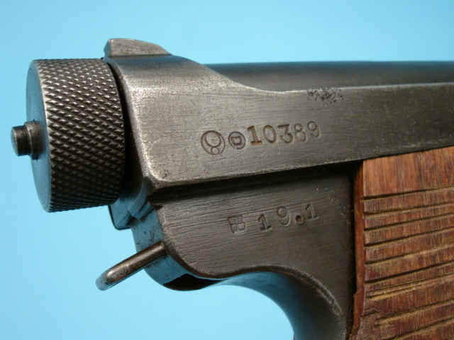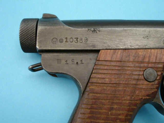 Serial no. 10389, 8mm, 4 5/8-inch barrel. Blued finish. Walnut grips. Aluminum-based
