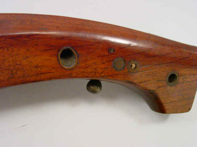Wood very good but having a small hairline crack on left side near muzzle. Wedge missing.