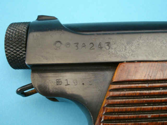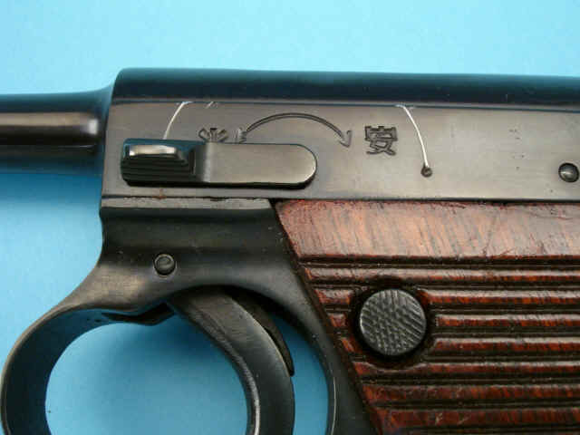 Serial no. 38243, 8mm, 4 1/2-inch barrel. Nagoya proofs. Blued finish. Grooved walnut
