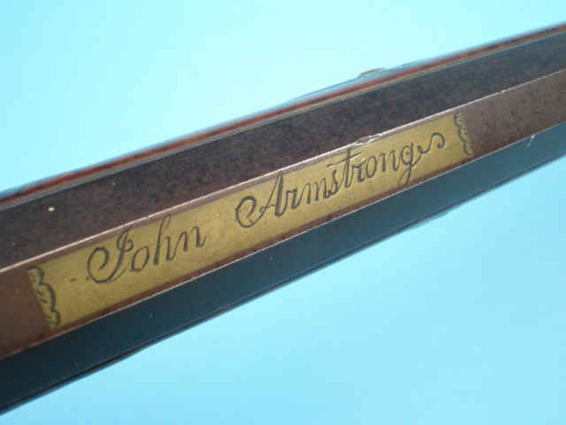 sight. Open rear sight. Top flat with inlaid brass panel reading: John Armstrong.