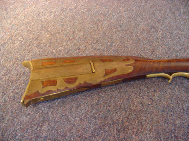 brass inlays, including pierced American eagle motif patchbox; plain American eagle