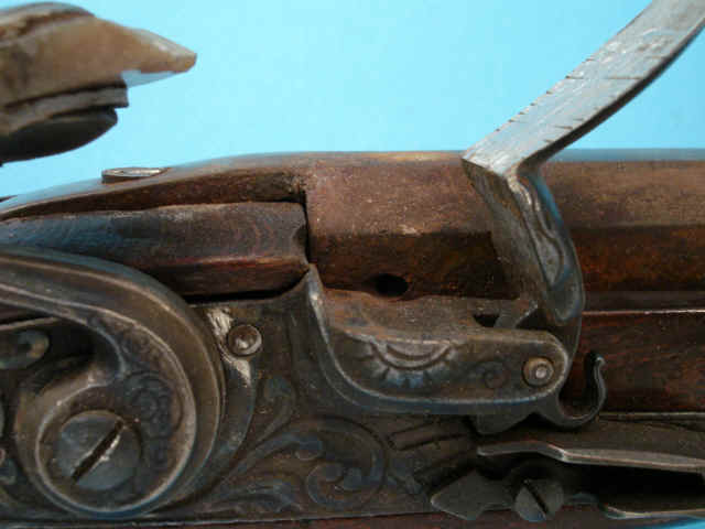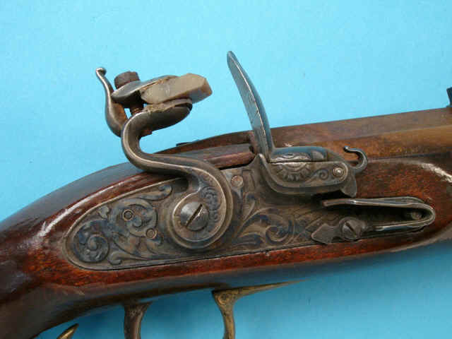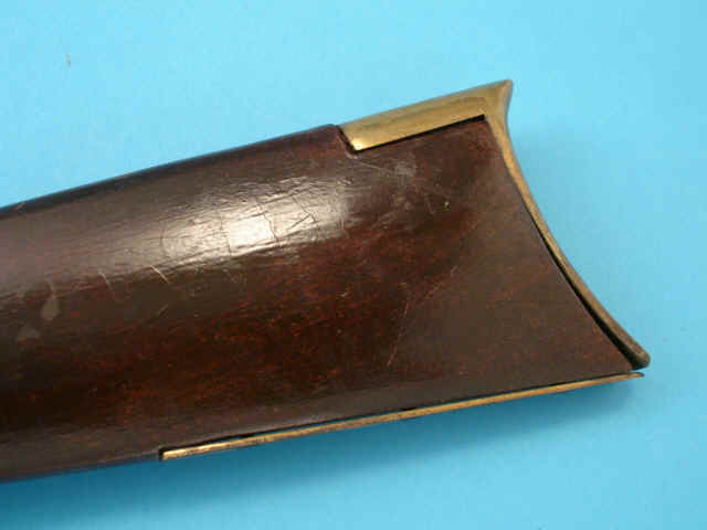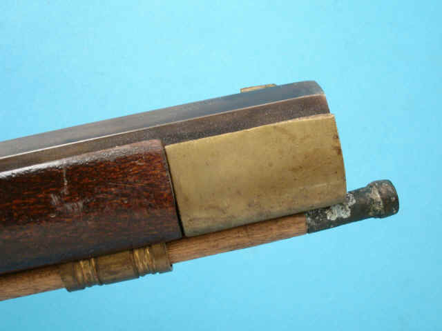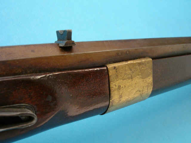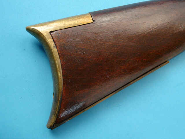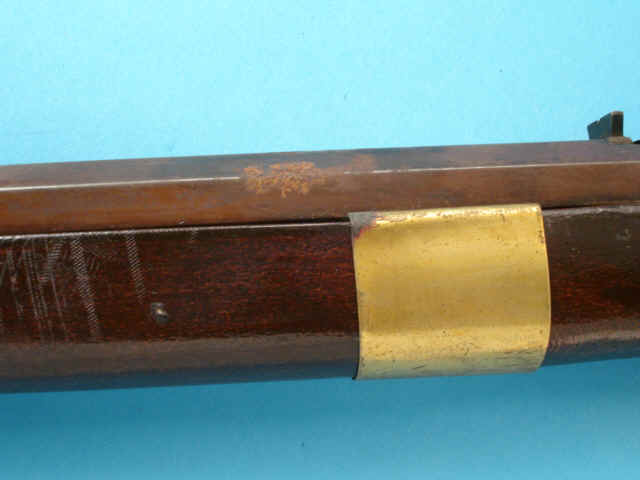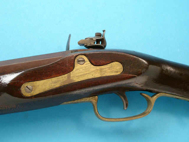 .45 smoothbore caliber, 33 1/2-inch octagonal browned barrel; flintlock with cast