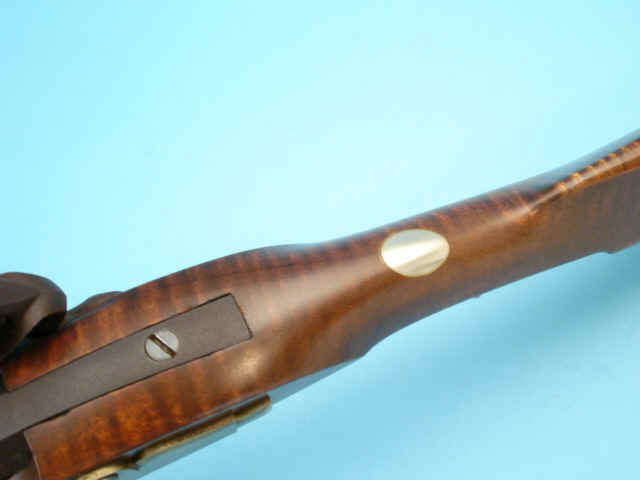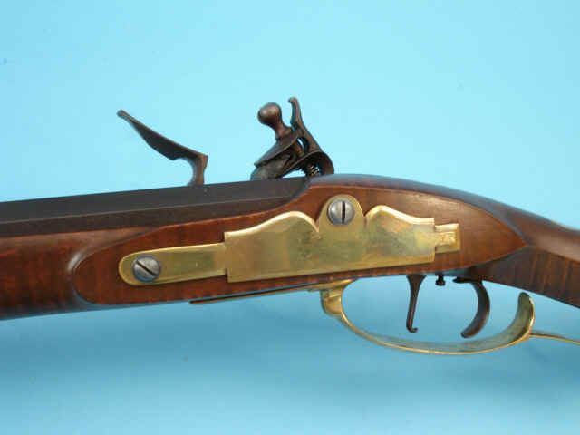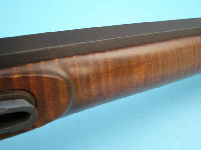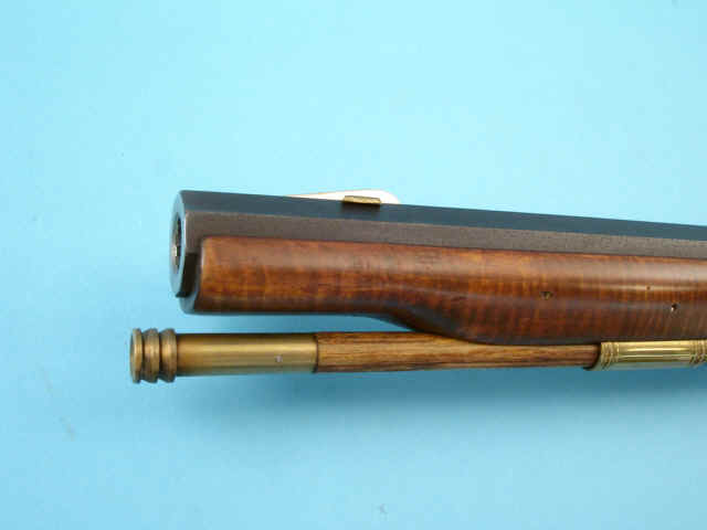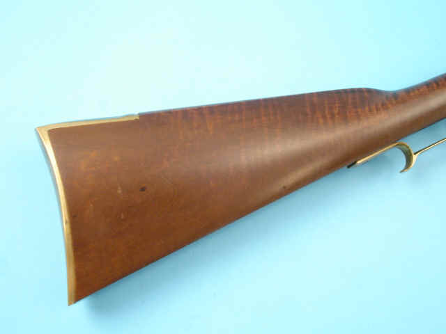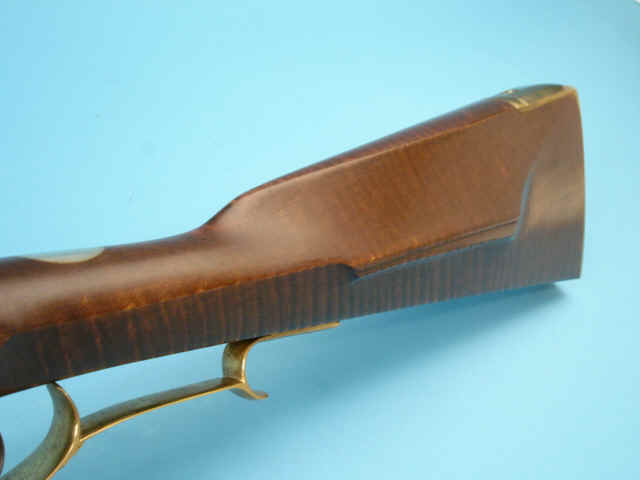 triggers. Brass furniture and buttplate. Tiger maple stock wtih wooden ramrod with brass