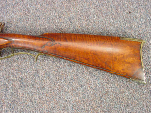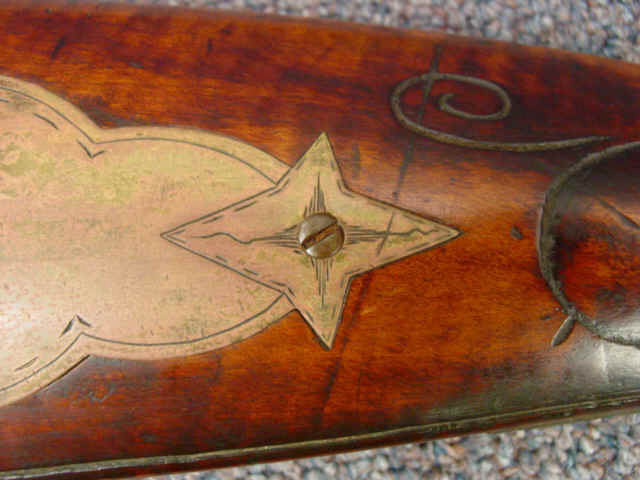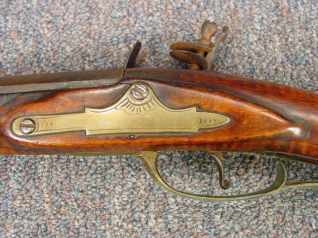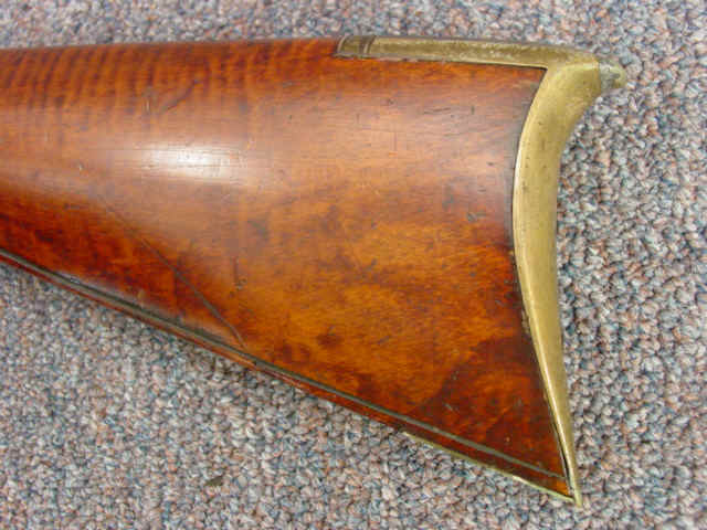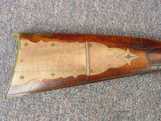 trigger. Brass mounts, including classic Kentucky triggerguard, patchbox with star