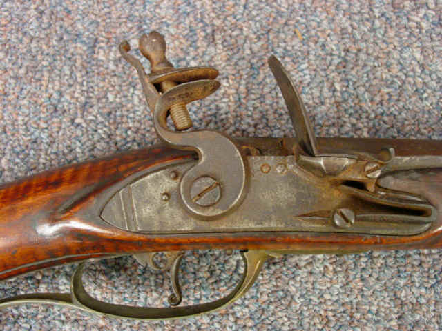 primarily on lock and at breech of barrel. Brass with mellow patina, could use careful
