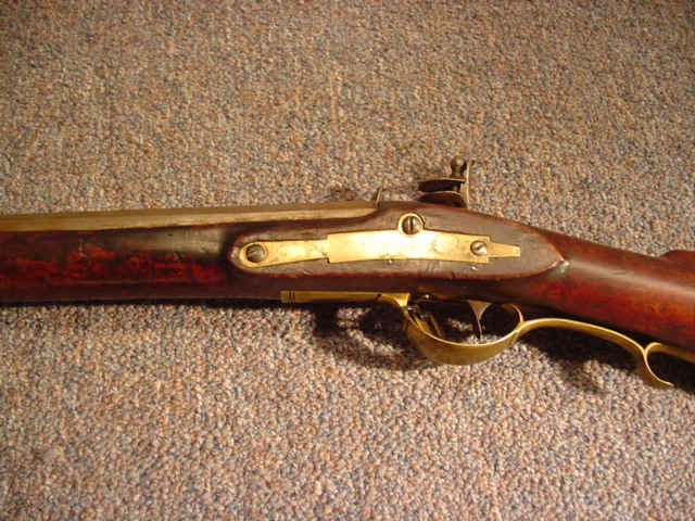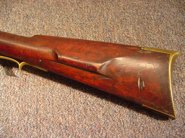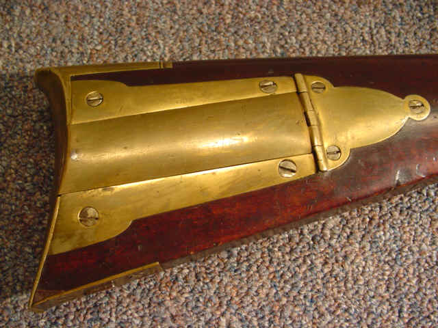 pitting; mellow patina to brass. Enlarged screw holes. Modified inletting in lock cavity.