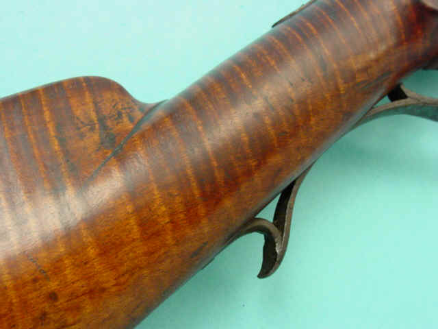 ramrod pipes; hickory ramrod; curly maple stock with low relief crescent cheekpiece with