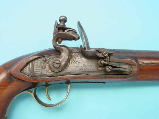 Officers Kentucky Flintlock Pistol of Late Revolutionary War and War of 1812, with H.