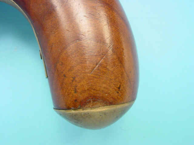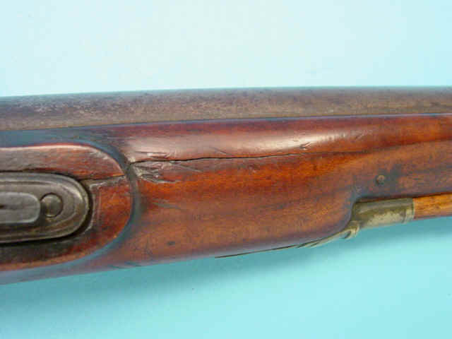 brass patina; stock worn and with nicks, mars, and light cracks; 70% varnish.