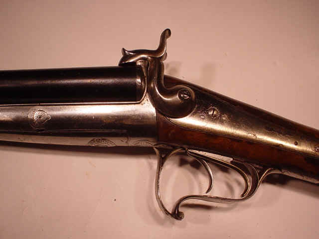 latch, scrolled triggerguard and buttplate. Burl walnut stock with sling mounts.