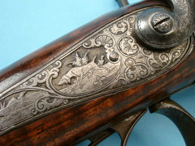 Engraved German Side-by-Side Double Barrel Pinfire Shotgun