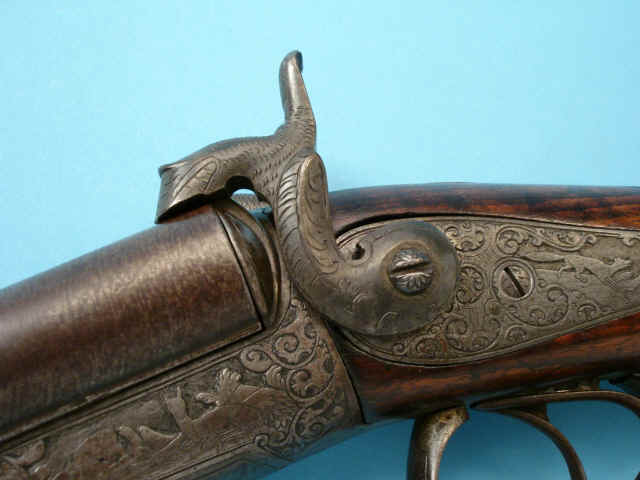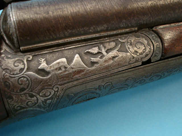 twisting lever, with game panel scenes; rear portion of triggerguard horn; steel shotgun