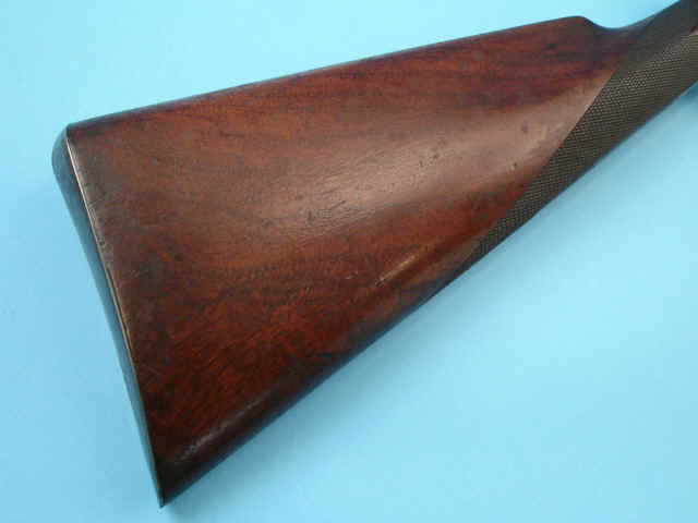straight stock of slightly figured walnut. Steel buttplate. Finely checkered splinter