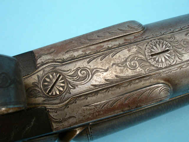 Serial no. 1978. 12 gauge. 28-inch Damascus barrels. Concave smooth rib with maker's