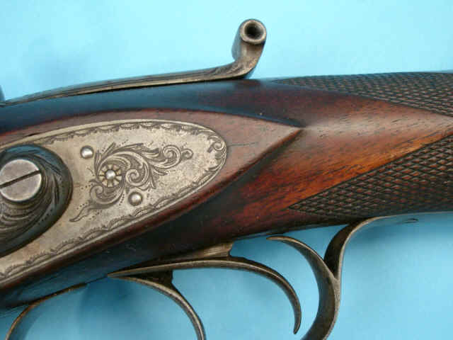 locks engraved with shaded bold foliate scroll. Percussion fences. Finely checkered
