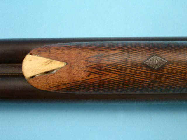 rebounding locks. Action and locks with foliate scroll details. Checkered straight-grip