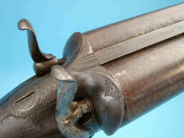 No visible number. 10 gauge. 30-inch twist barrels. Game rib marked: John Hall Makers