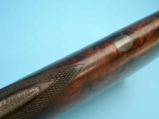 checkered composition buttplate. Finely checkered wedge-fastened splinter fore-end with