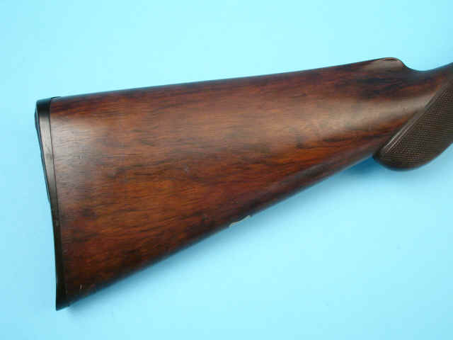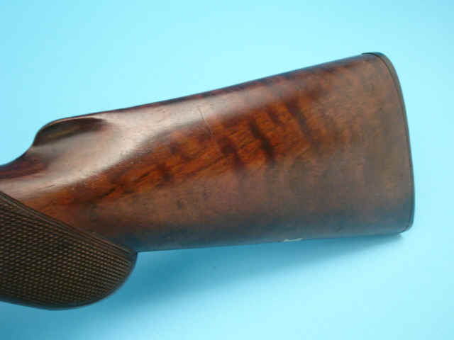 Checkered pistolgrip stock of figured walnut. Hard rubber buttplate. Vacant shield.