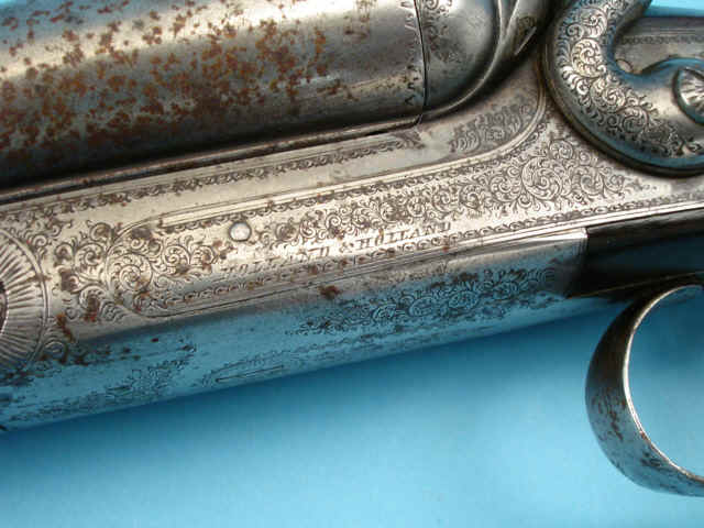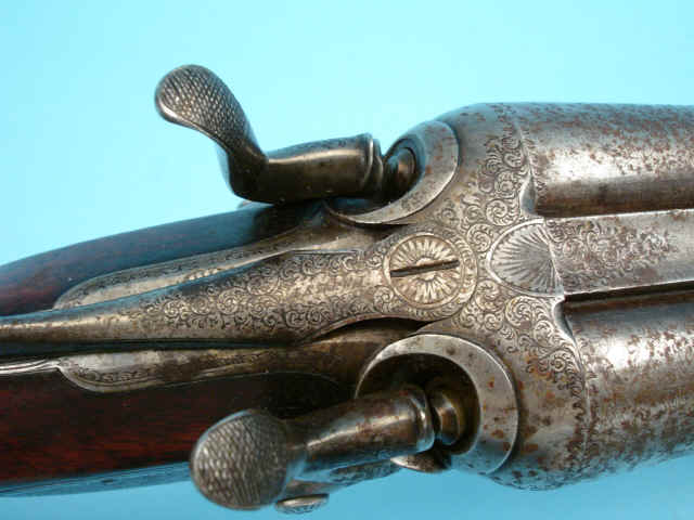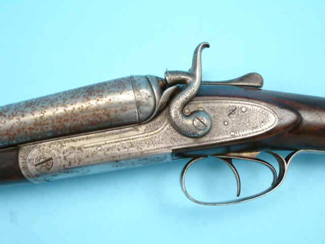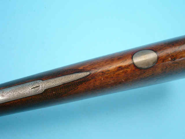 scroll. Low hammers, Percussion fences. Checkered straight-grip stock of figured walnut.