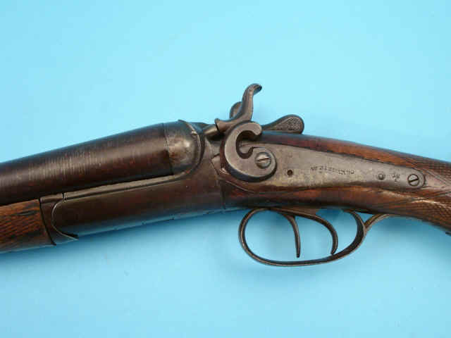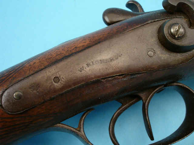 Extractors. Back action hammer locks marked: W. Richards. Double triggers. Checkered