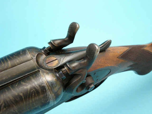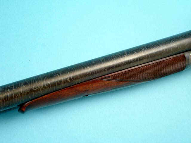 Serial no. 4085, 10 gauge, 30-inch side-by-side Damascus barrels with maker and