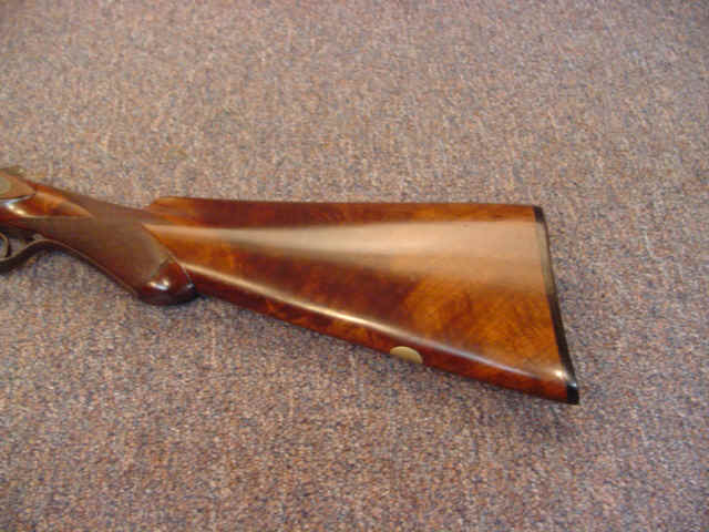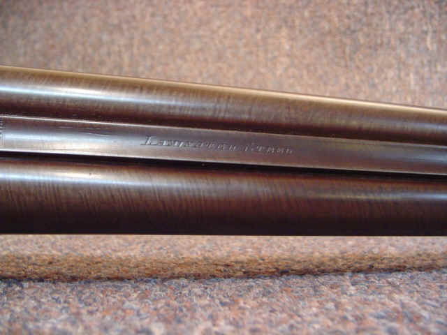 finish, with twist barrels; LAMINATED STEEL on barrel rib; double triggers, varnished and
