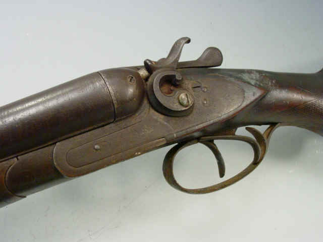 Antique Double Barrel Belgian Hammer Side-by-Side Sidelock Shotgun