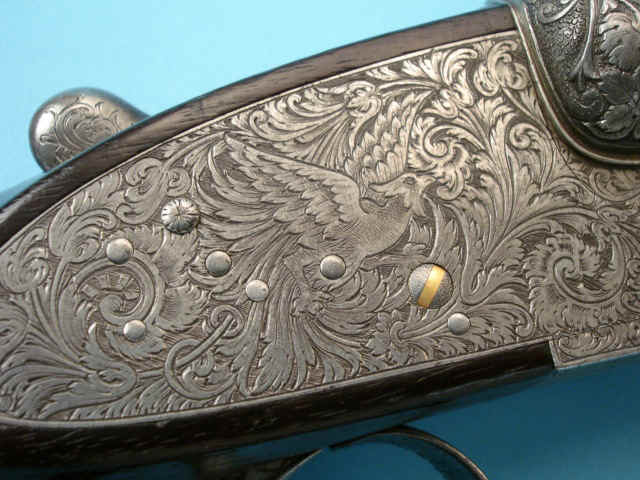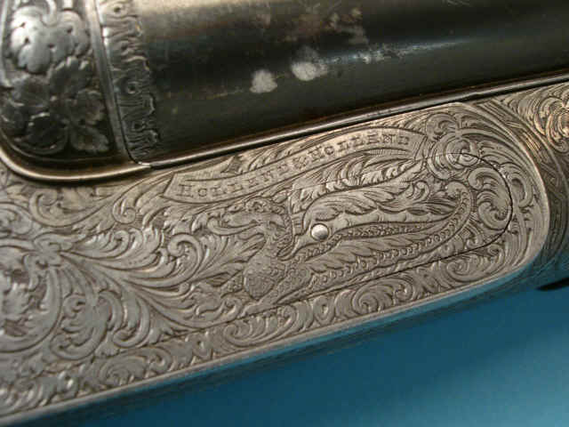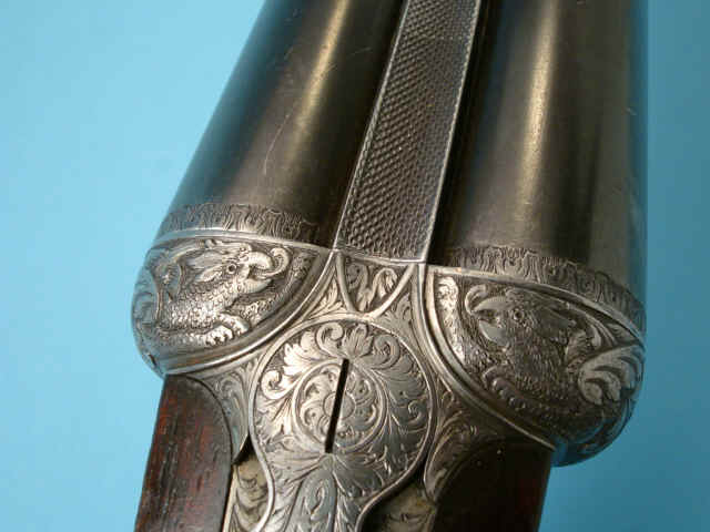 Royal grade engraving, on locks and breech, and with sculpted recoil shields; double