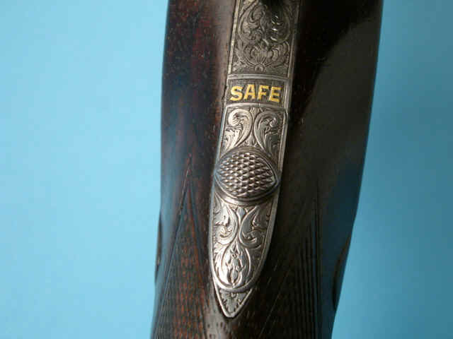 triggers; automatic ejectors; automatic safety; checkered and varnished straight select