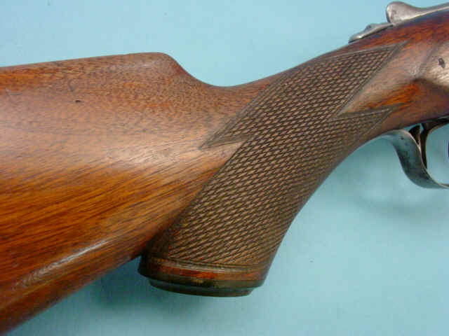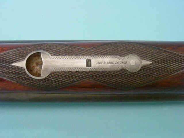 on bottom of barrel lug; blued and case-hardened finish; border engraved. Varnished and