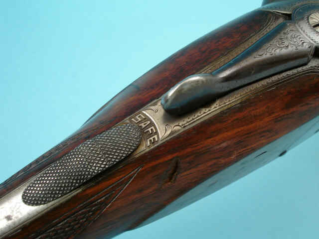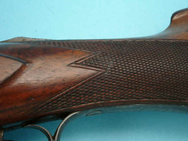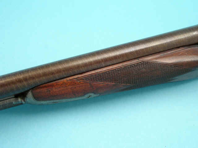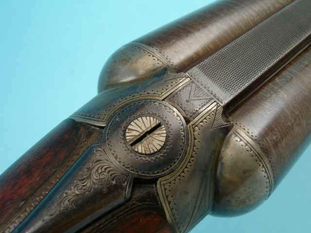 scroll and border engraved frame, toplever, fore-end mounts, and triggerguard. Varnished